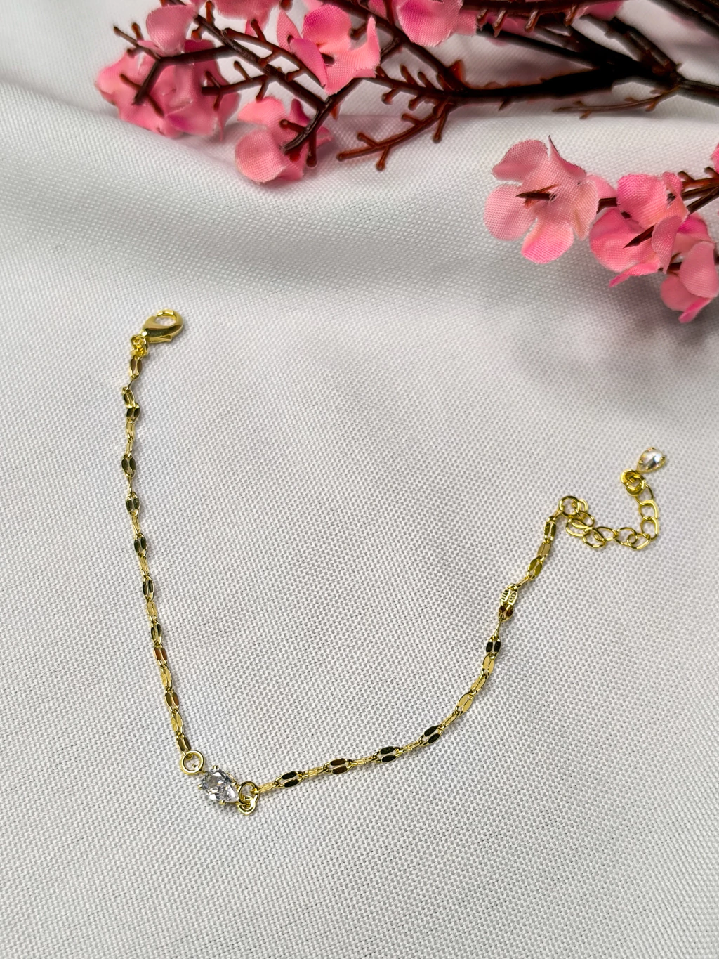 Se você quer um acessório que una delicadeza e estilo, essa pulseira é a escolha perfeita. O banho de ouro 18k assegura resistência ao desgaste, mantendo o brilho e a beleza da peça por muito mais tempo. O pingente minimalista com zircônia cristal confere um toque de luz discreto, realçando sua elegância com sutileza.
